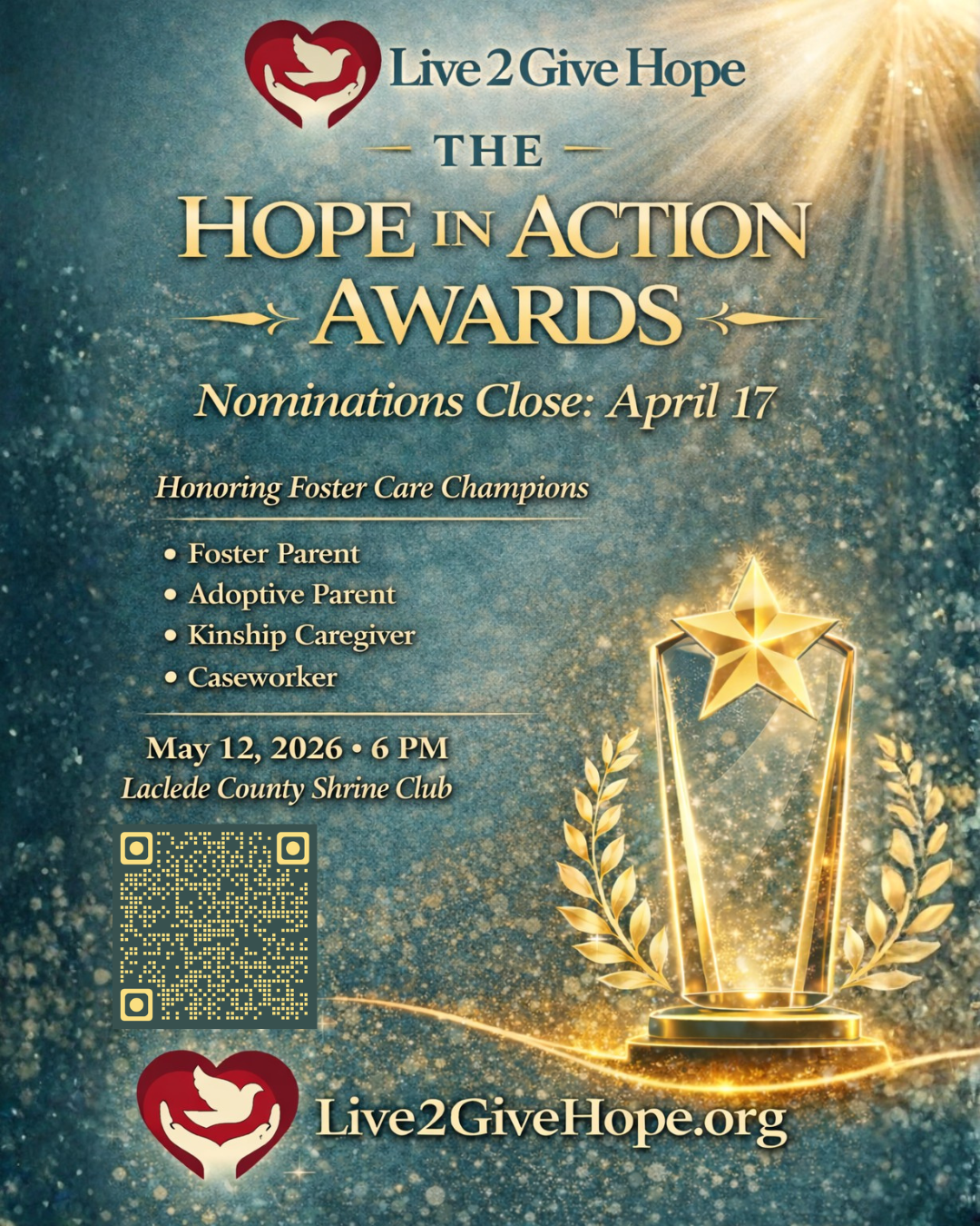 Each May, during Foster Care Awareness Month, Live 2 Give Hope proudly recognizes outstanding individuals who serve children and families within Missouri’s 26th Judicial Circuit.